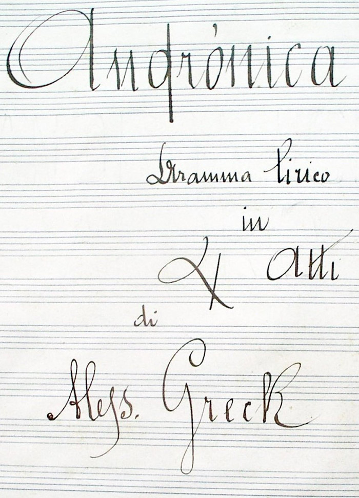 Το σπαρτίτο της χαμένης όπερας «Ανδρονίκη» του Αλέξανδρου Γκρεκ.