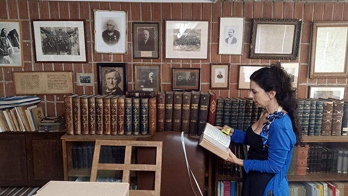 Η υπεύθυνη του αρχείου του Ωδείου Αθηνών κα. Στέλλα Κουρμπανά, στον χώρο του αρχείου