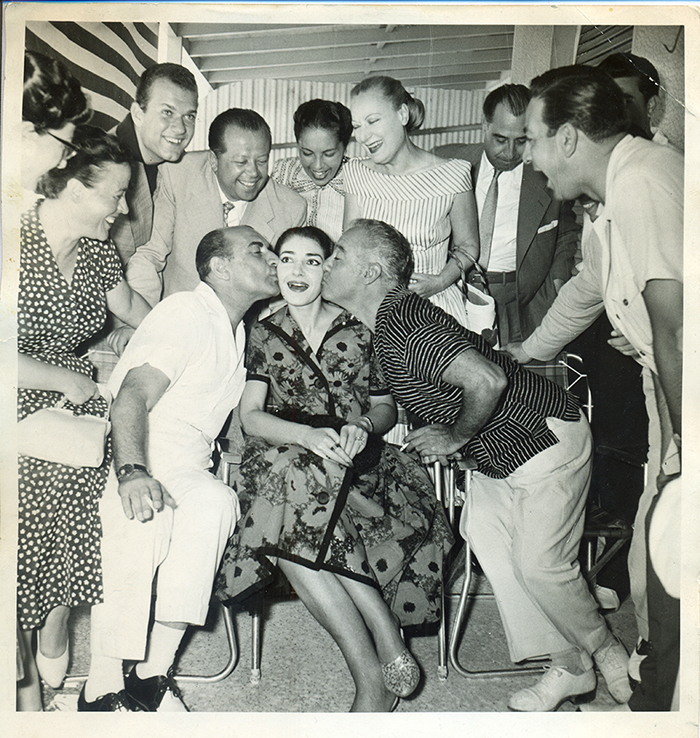 Η Μαρία Κάλλας σε επίσκεψή της στην Ελλάδα με τους πρώην συμμαθητές και συνεργάτες της (Αρχείο Αρφάνη)
